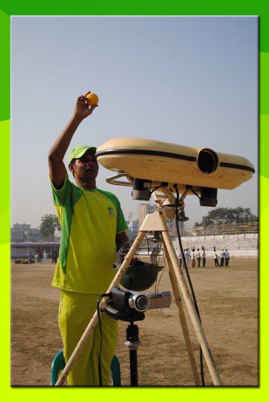 Bowling machine ready for action
