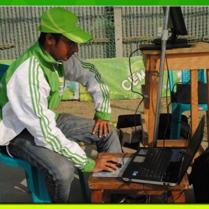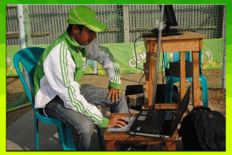 Coach making the batsman understand about the video analysis